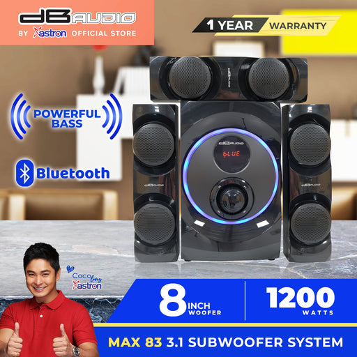 Db Audio MAX-83 3.1 Subwoofer System Bluetooth 8" woofer 1200W FM Radio Powerful Bass