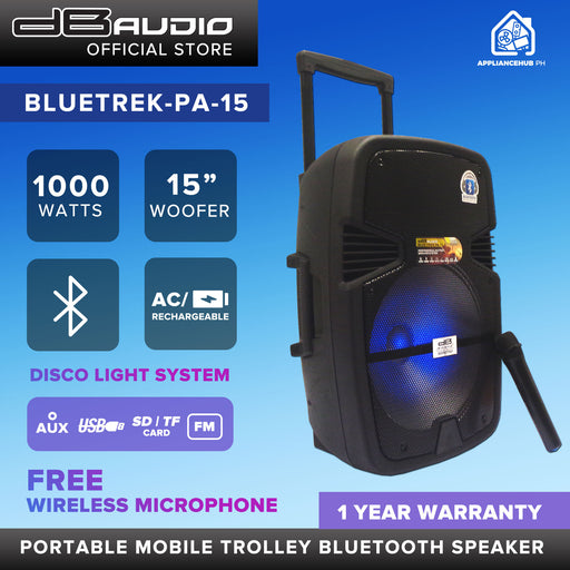 [FREE Wireless Microphone] Db Audio Bluetrek-PA-15 Portable Mobile Trolley Bluetooth Speaker HIFI Boombox (15 inch woofer) (1000W)