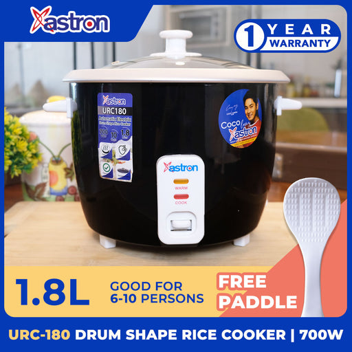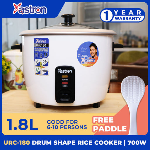 Astron URC180 Drum Shape Rice Cooker -1.8 Liters | Large Capacity | Aesthetic | Ideal for 6-10 persons | 700W | Free Paddle