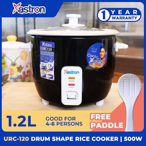 Astron URC120 Drum Shape Rice Cooker - Black | 1.2 Liter Capacity | Aesthetic | Ideal fo 4-6 persons | 500W | Free Paddle