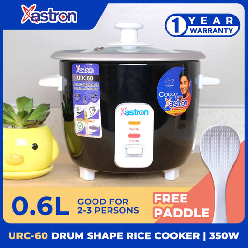 Astron URC60 Drum Shape Rice Cooker - 0.6 Liter Capacity | Aesthetic Small Rice Cooker | 3 cups | 350W | Ideal for 2-3 persons | Minimalist | Free Paddle