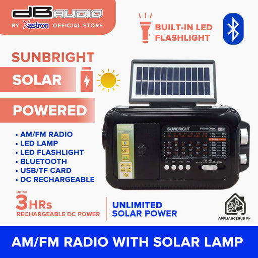 Db Audio SUNBRIGHT Solar-Powered Radio | AM/FM | Flashlight | LED Lamp | Bluetooth | Emergency Use | TF Card