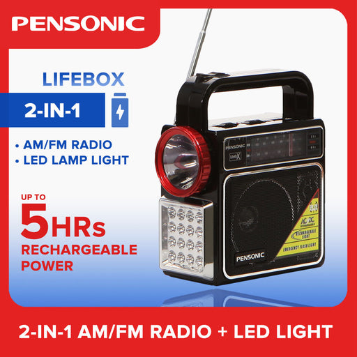 Astron LIFEBOX AM/FM Radio with LED Light – Rechargeable | Lightweight | Loud Speaker
