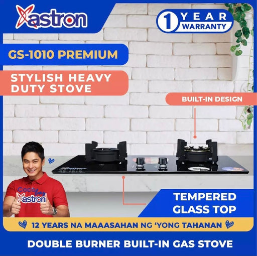 Astron GS9090 Built-in Double Burner Gas Stove | Heavy Duty | with Hob | Tempered Glass Top