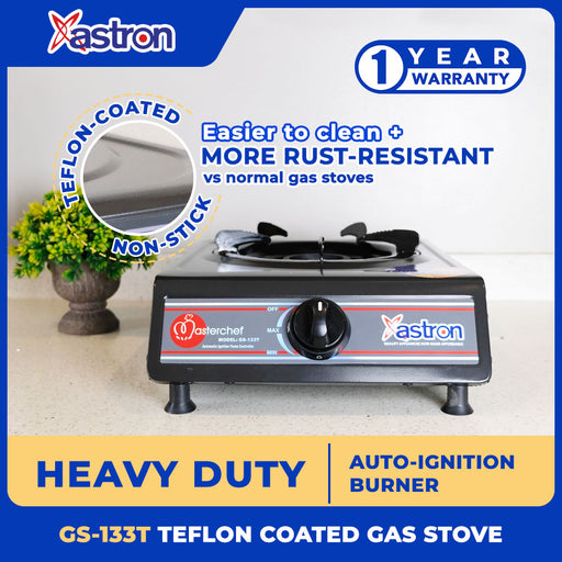 Astron GS133T Single Burner Gas Stove - Teflon Coated | Heavy Duty | Non-stick | Easy to Clean