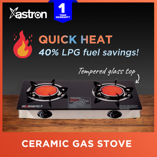 Astron MAXHEAT2 Double Burner Ceramic Gas Stove with Tempered Glass Top infrared burner