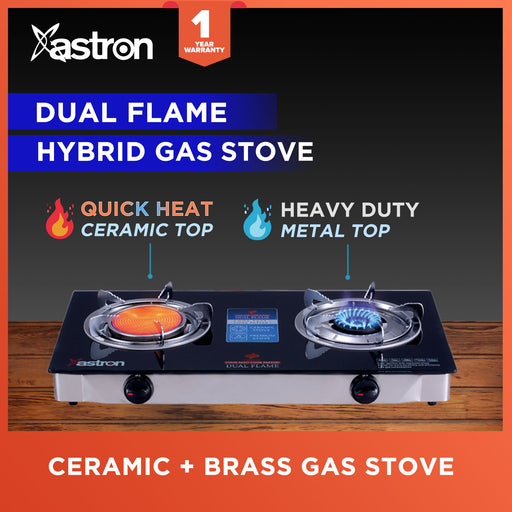 Astron DUALFLAME Double Burner Gas Stove - Tempered Glass Top | Ceramic and Metal | Infrared burner
